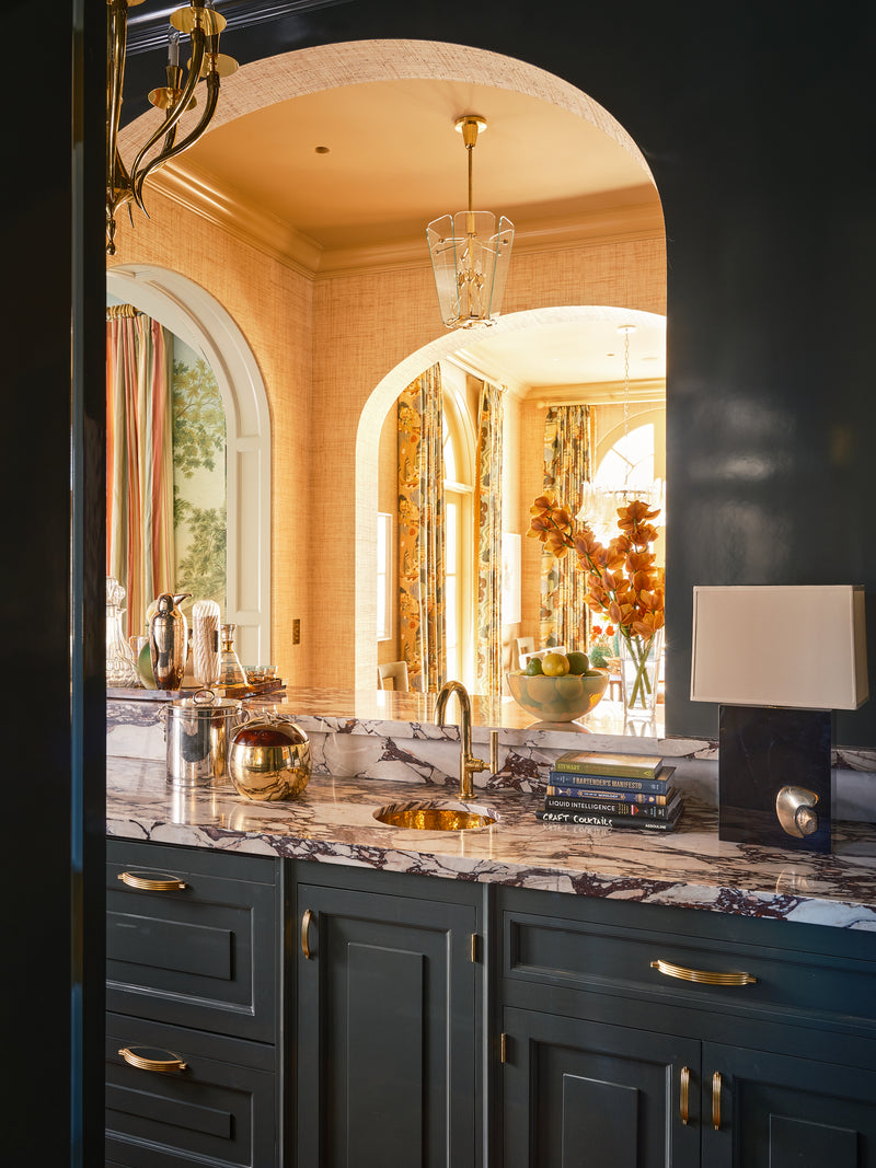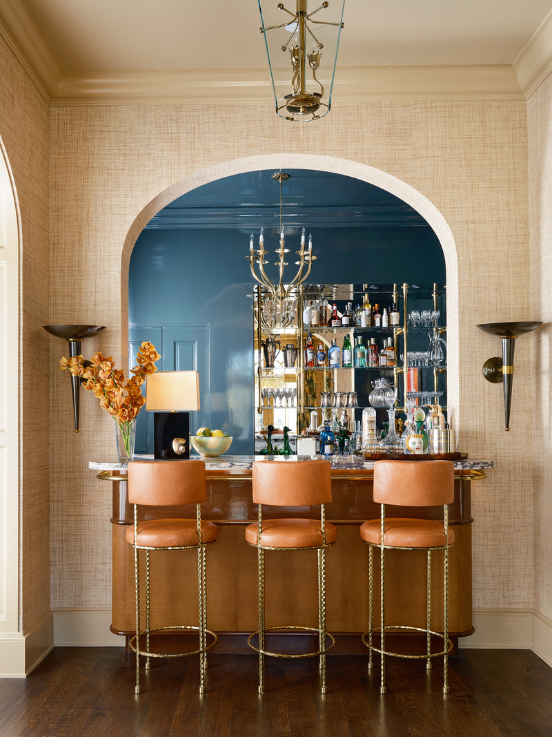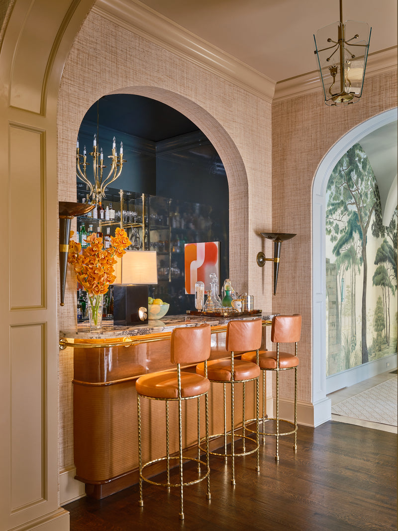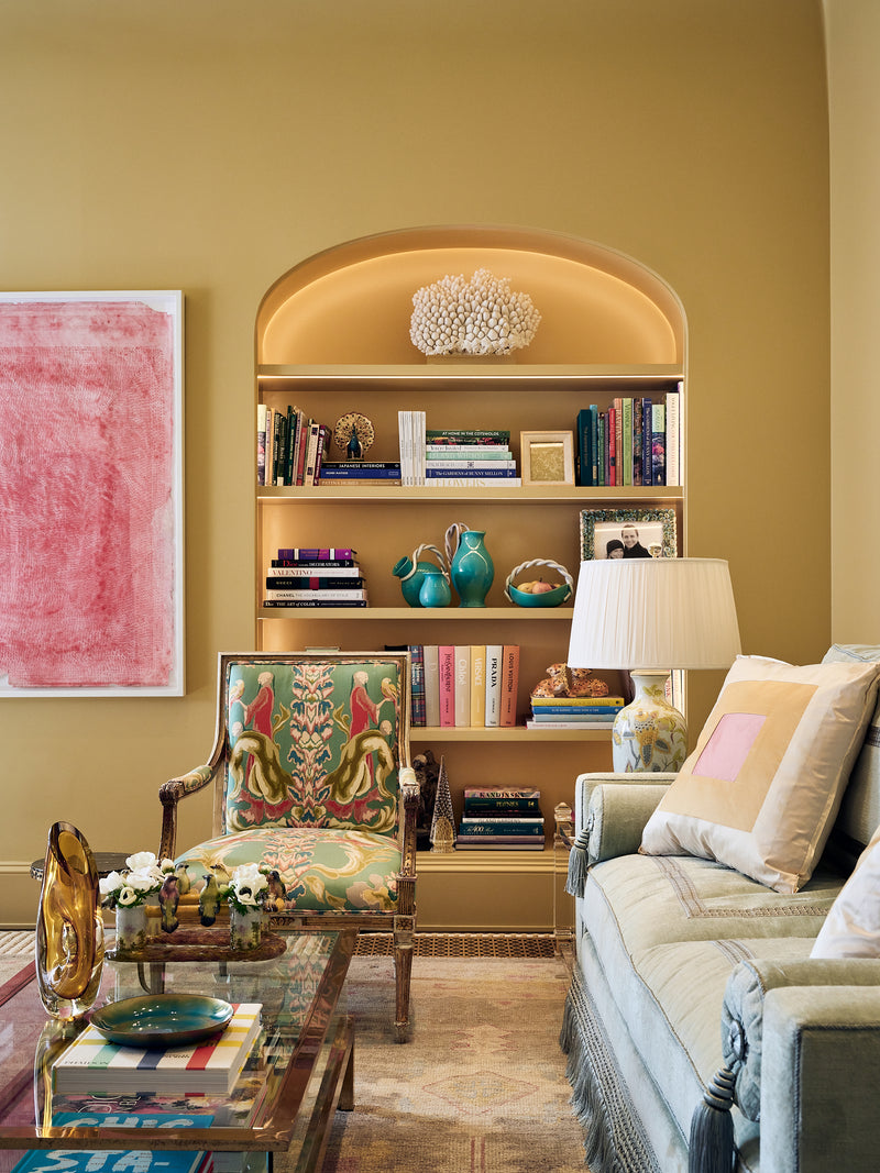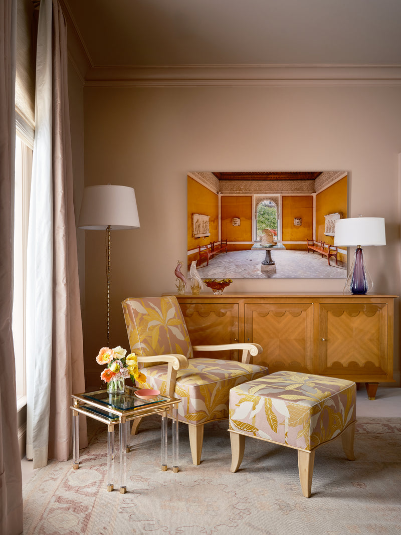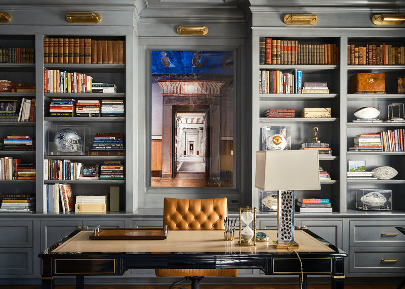 Looking back on these pages, the thing that stands out most is how often these clients said yes. When we felt most creative and excited, they were trusting and open, giving us every chance to explore print, patterns, and color. It was incredible how often they encouraged us to take an idea further. Just look at her dressing room if you don’t believe me. I think it’s the most fun I’ve ever had in a closet. You rarely have clients who will let you take it this far. We designed it with Christopher Peacock. Totally glamorous, totally custom. Even the shelves are lined with leather.