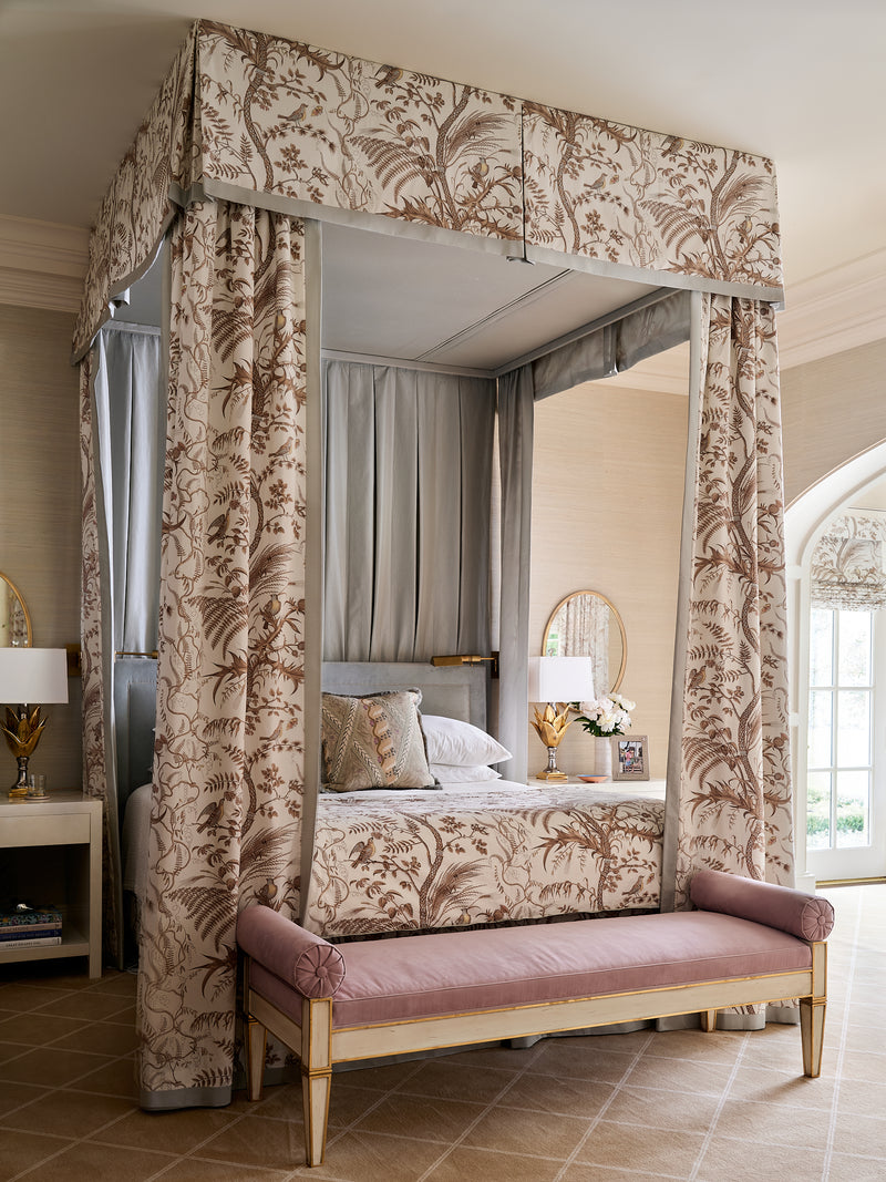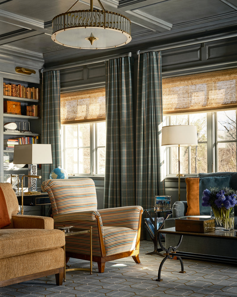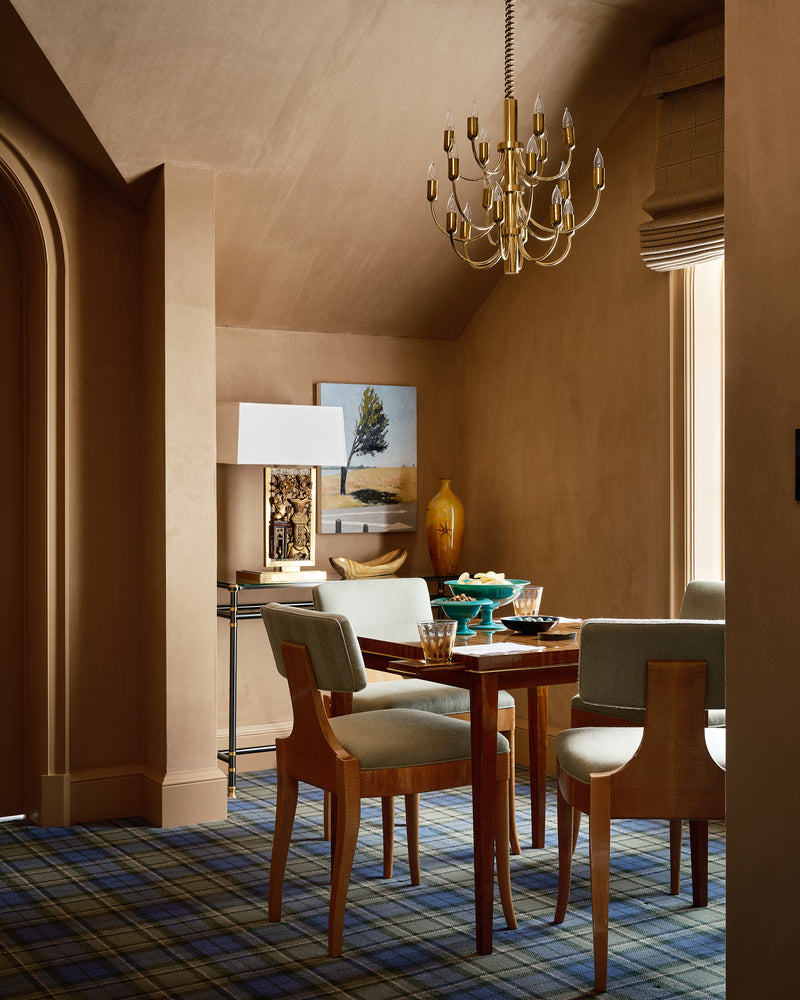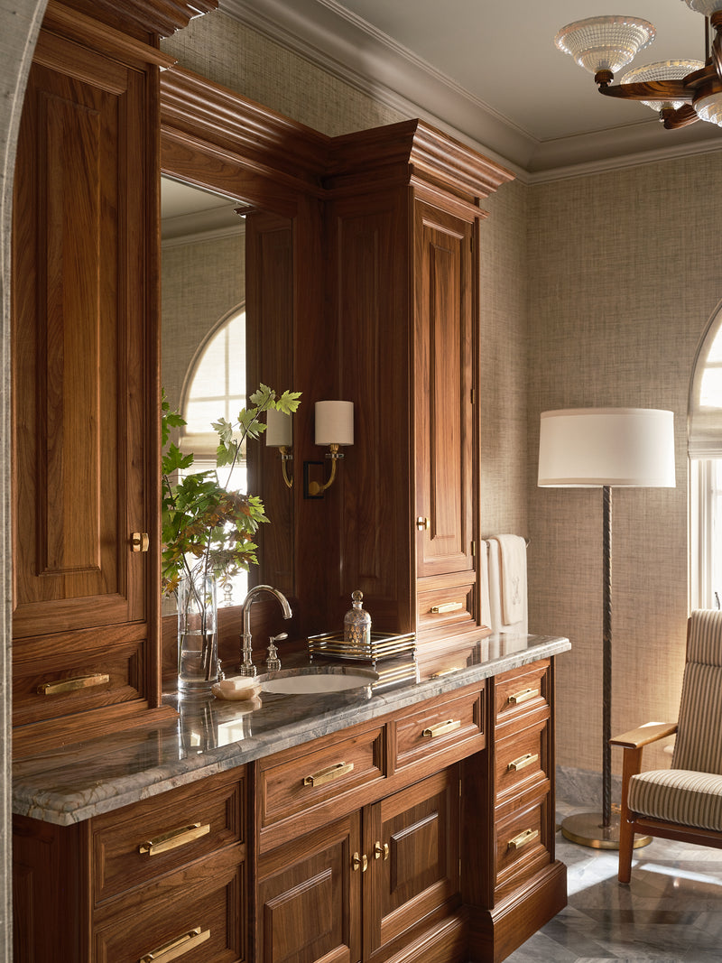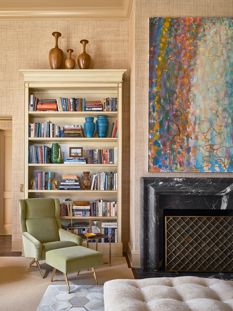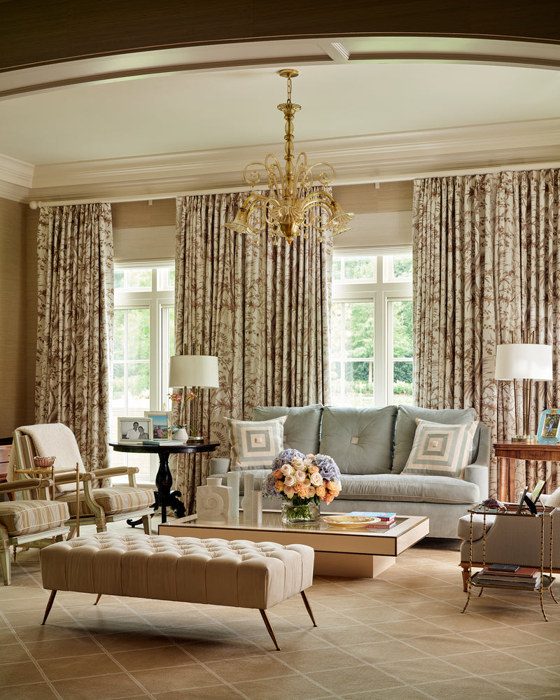 Looking back on these pages, the thing that stands out most is how often these clients said yes. When we felt most creative and excited, they were trusting and open, giving us every chance to explore print, patterns, and color. It was incredible how often they encouraged us to take an idea further. Just look at her dressing room if you don’t believe me. I think it’s the most fun I’ve ever had in a closet. You rarely have clients who will let you take it this far. We designed it with Christopher Peacock. Totally glamorous, totally custom. Even the shelves are lined with leather.