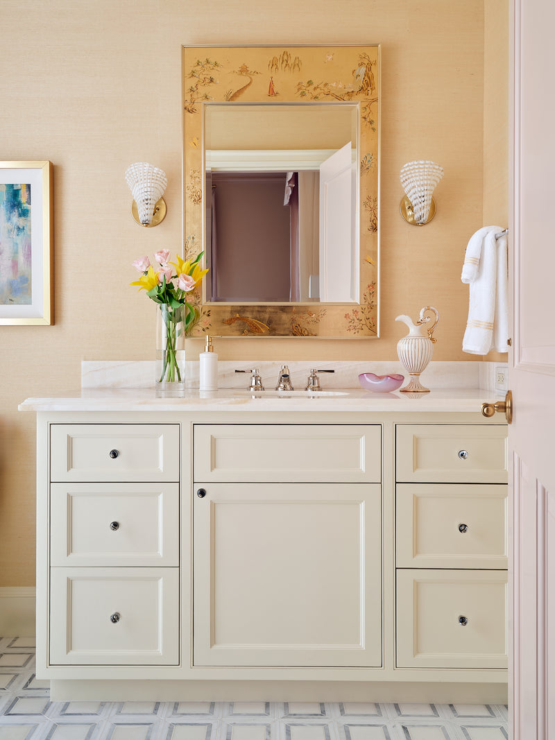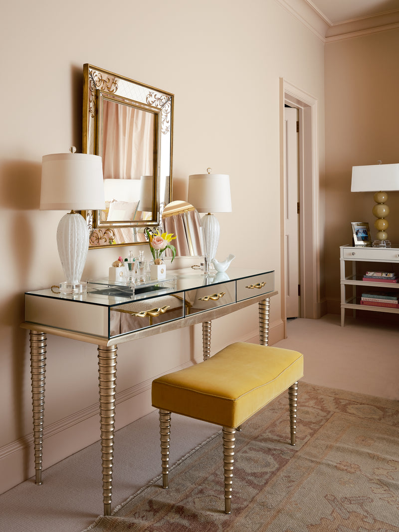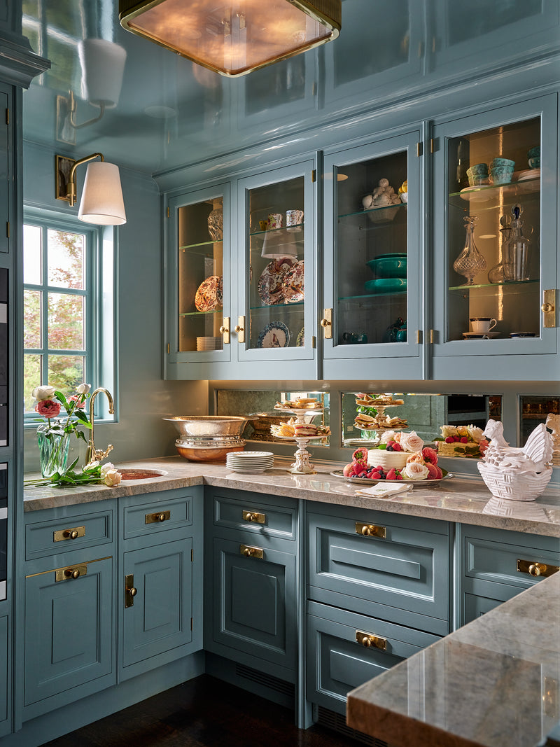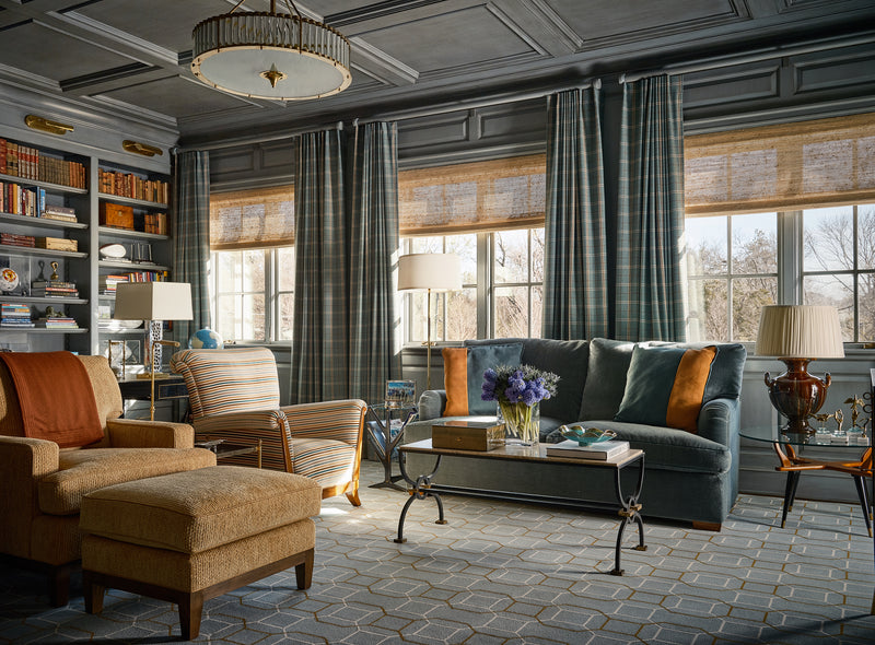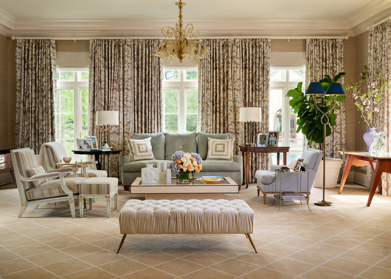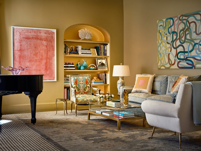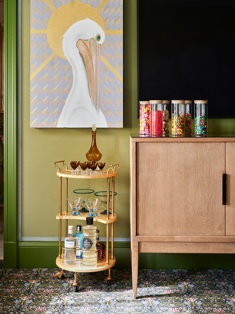 Looking back on these pages, the thing that stands out most is how often these clients said yes. When we felt most creative and excited, they were trusting and open, giving us every chance to explore print, patterns, and color. It was incredible how often they encouraged us to take an idea further. Just look at her dressing room if you don’t believe me. I think it’s the most fun I’ve ever had in a closet. You rarely have clients who will let you take it this far. We designed it with Christopher Peacock. Totally glamorous, totally custom. Even the shelves are lined with leather.