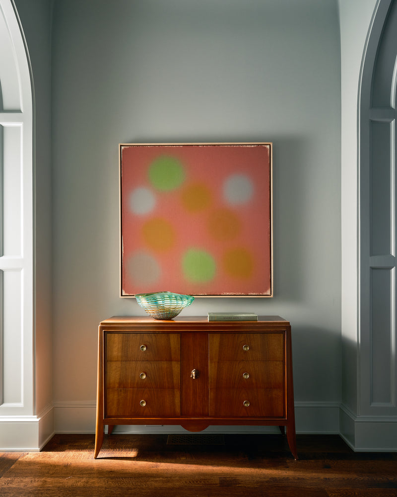 As it always is, selecting art was another great pleasure at Hollow Way. My husband and I love emerging artists and have been fortunate to have purchased wonderful works over the years. In truth, it has become one of my favorite parts of completing houses. One can have the most amazing furniture and lighting possible, but if the art is subpar the house never truly meets its potential. This has become clearer to me with every passing year, and it’s something we always bring up with clients from the very beginning. It’s so gratifying when a client gets it, as this couple most certainly did.