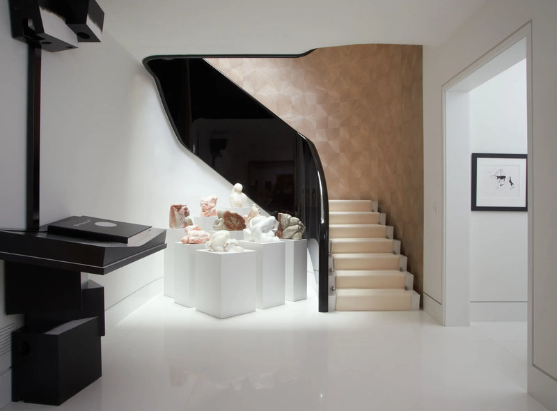 Cecily and Robert Bradshaw live in Toronto, where Robert paints and sculpts and Cecily, a devoted equestrian, rides dressage. Together, they are passionate art collectors with a refined interest in contemporary art. When they met, Robert was living in Rosedale, a fashionable district of Toronto, in what he referred to as a “bachelor pad”—a handsome house overlooking one of the city’s famous ravines. After they married, they realized that there was insufficient space to display their ever-growing collection of art and sculpture. When a large piece of property next door to the existing house became available, they jumped at the opportunity to purchase it. Architect Wayne Swadron was brought on to design what the Bradshaws refer to, somewhat modestly, as the Guest House. It’s true that the new space provides additional bedrooms for family and friends. However, a much larger area is devoted to housing and displaying their substantial art collection in a space that can also be used for entertaining friends and the many cultural groups with which they are associated, including local art museums and the symphony.