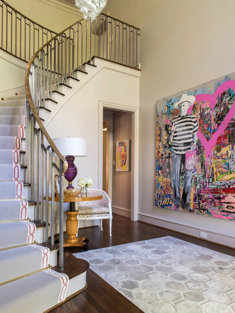 Stephanie and Michael Seay know what they like, but that doesn’t mean their tastes always line up: Michael has been collecting 19th-century art since he was in his 20s. Stephanie has an affinity for pink and sways more toward contemporary works. But their house, equal parts Michael and Stephanie, was blended expertly to complement each of their styles with the help of designer Jan Showers.