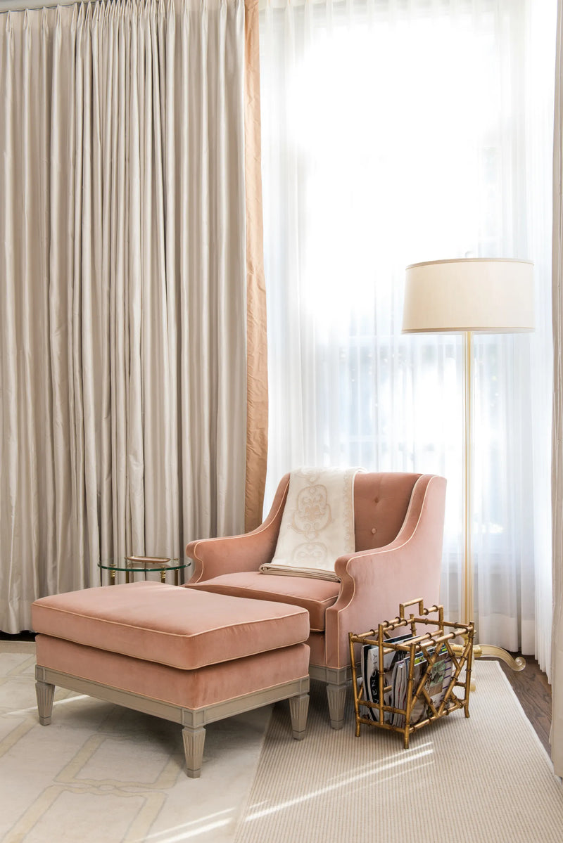 As for Stephanie’s favorite color? She got her pink room by way of a glamorous office. The space is awash in Showers’ go-to blush tint, Benjamin Moore’s “Queen Anne Pink.” A custom Jan Showers “Plaza” desk with an Edelman leather top and bookshelves filled with family photos, collections, and travel mementos make it one of Stephanie’s favorite spots. “I love sitting and doing work in here. It makes me feel very adult,” she laughs.