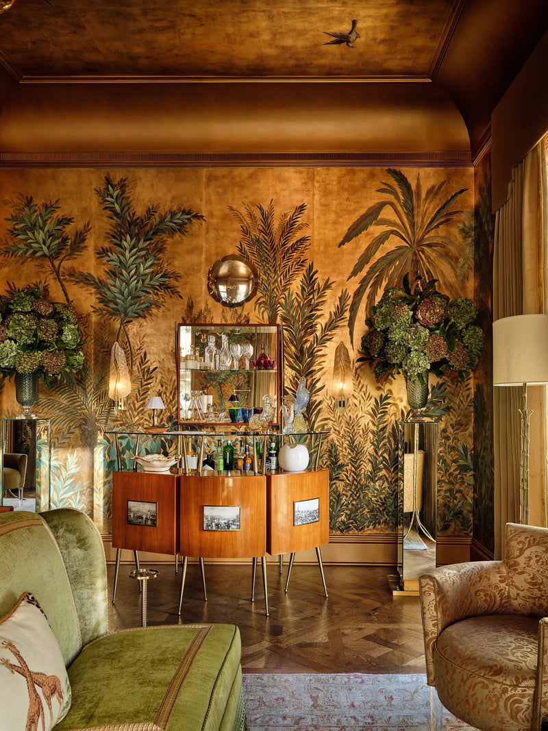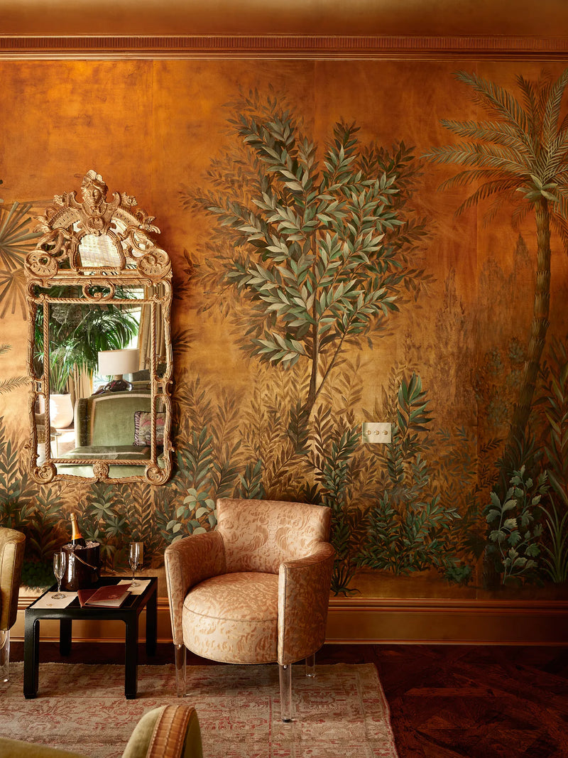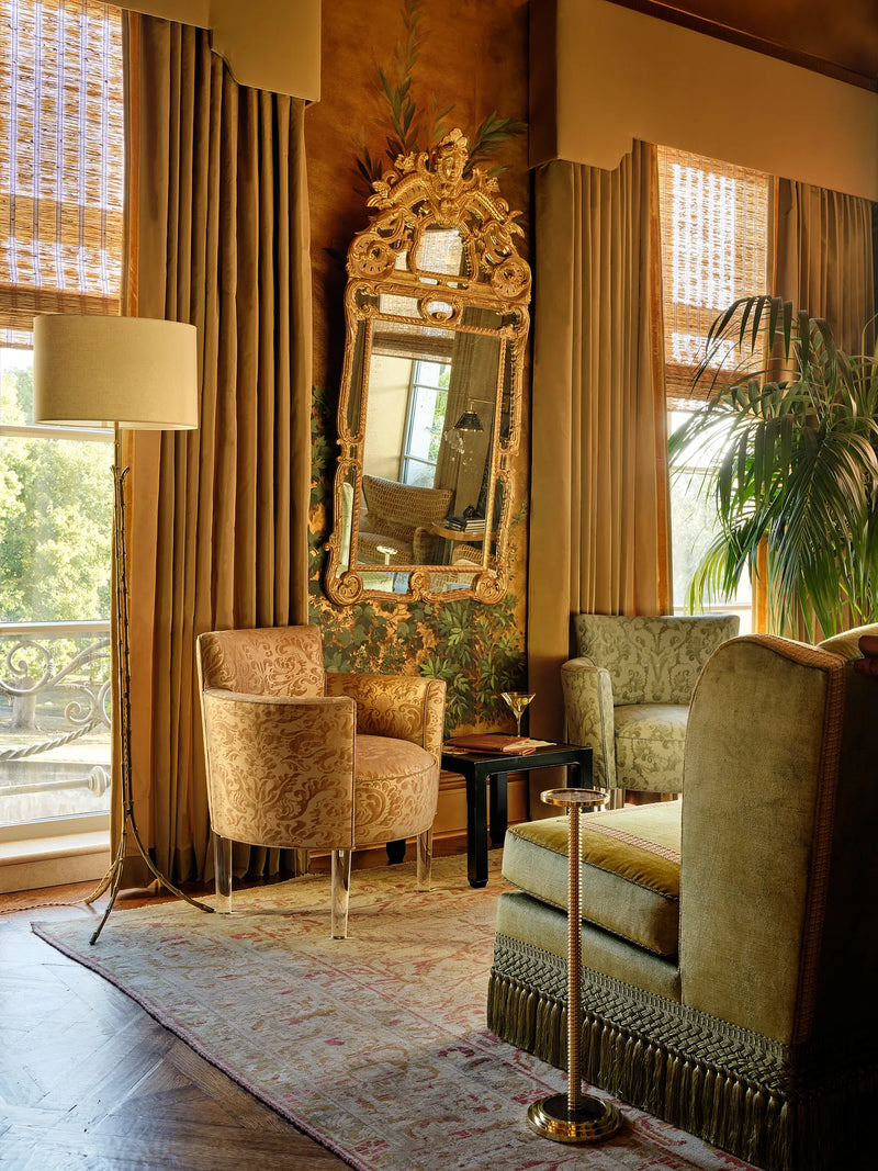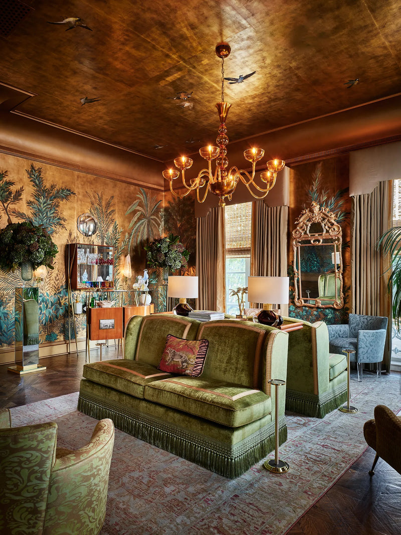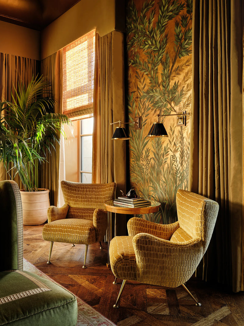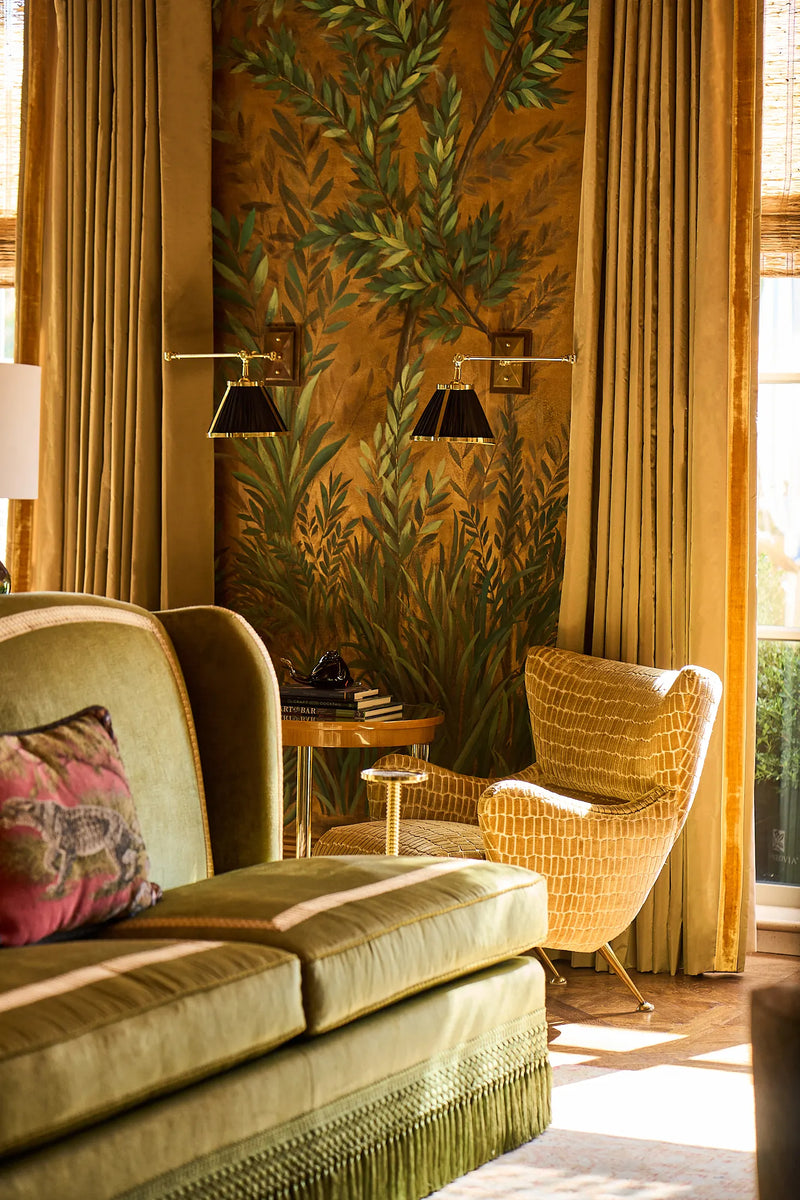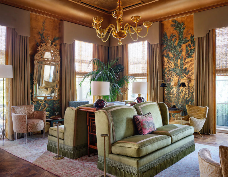 Kravet, who is my partner and represents so many designs of mine, was generous to provide the gorgeous velvets for the sofa and other chairs in the room. We were off to the races! I never looked back and knew we had to do this room. I named it after the old Cipango Club where Jim and I used to go in the ‘80’s---The Cipango Room---a club within a club. The Golden Hour.