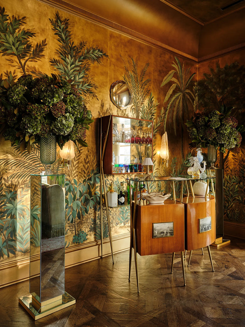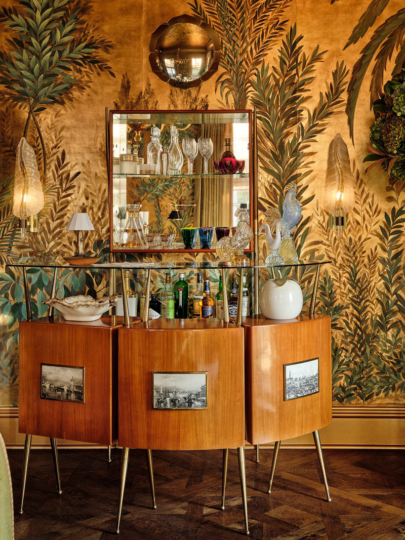 Of course, there had to be a bar in the room and I happened to have a fabulous Italian one that always reminds me of Harry’s Bar in Venice---it even has sketches of Venice on each front panel.