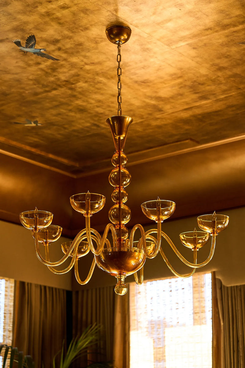 After visiting the proposed property for Kips Bay, I was on a plane going to Los Angeles. We had not planned to participate this year other than on the committee and the President’s Dinner Committee. For some inexplicable reason, I started having a vision of a cozy lounge that would be a club within a club. The walls would be a burnished gold painted wallpaper (I thought immediately of de Gournay because I had discussed doing a room with them in Palm Beach earlier) with drapery and ceiling to match. Because of all the beautiful moldings and trim by Casci Plaster in the room we knew Louis Gloria Painting would do a great job matching the background of the paper using Benjamin Moore paint. The lovely windows I could imagine with gorgeous silk drapery fabricated by The Shade Store.